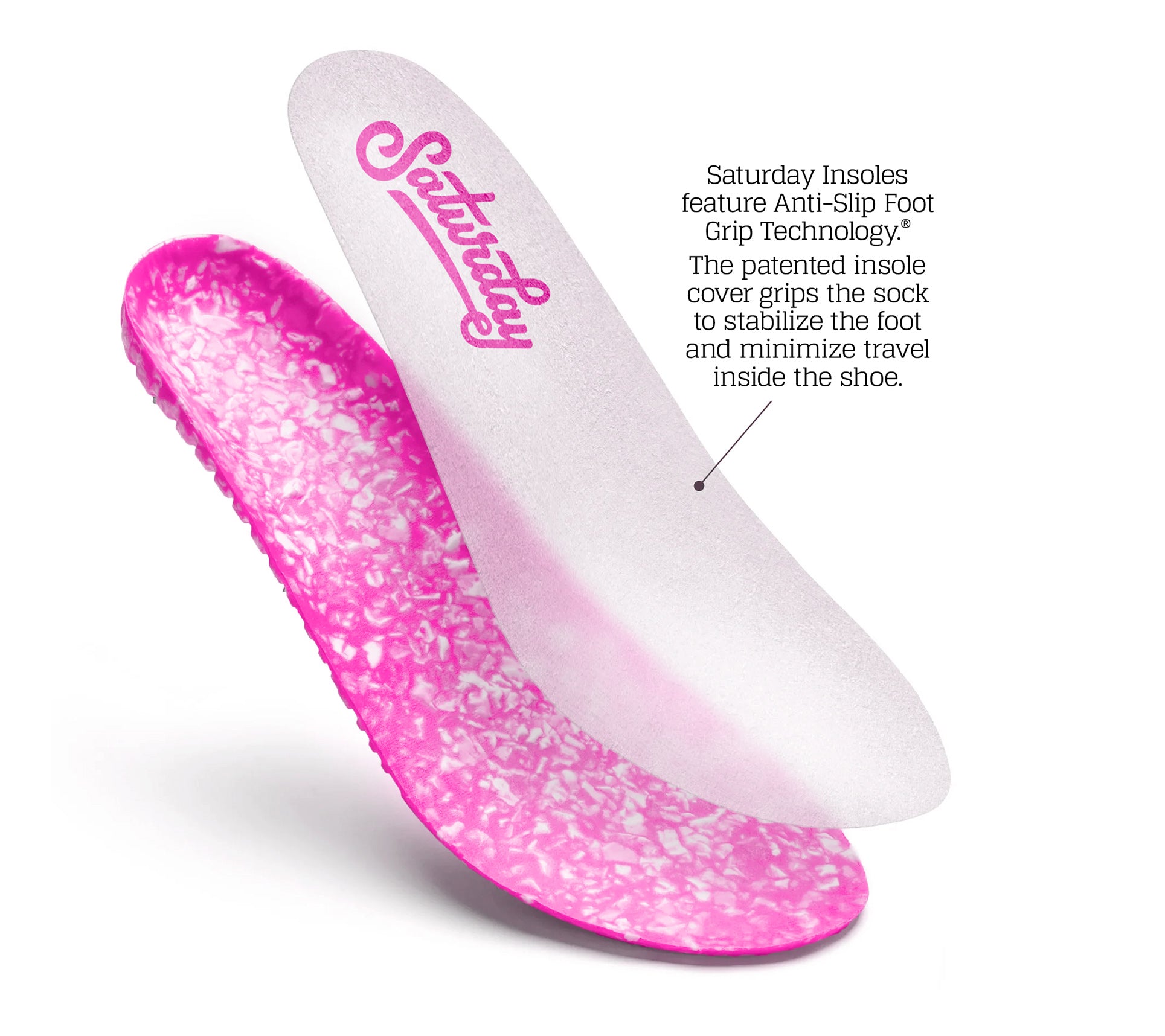 Saturday slip-ons are designed for comfort, with a wider toe box and a more forgiving, form-fitting upper featuring our proprietary elastic instep system that stretches vertically to fit a wider range of wearers than the rigid and narrow skateboarding slip-on.