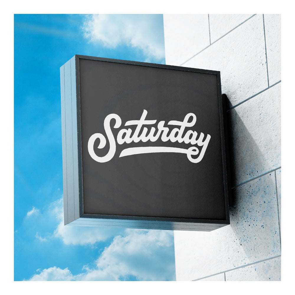 The Saturday logo was drawn by hand and crafted with love and respect for the traditional art of hand-lettering and commercial sign painting, intended to evoke the nostalgic optimism of yesteryear while signaling good times are always on the horizon.